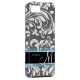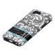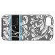 Elegant Grey and white floral damask pattern and light blue and black ribbon. Beautiful damasked phone cases. Add your own name and personalised monogram.