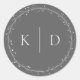 Elegant Grey and White Vine Wreath Monogram Classic Round Sticker