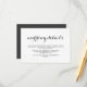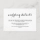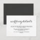 Elegant glam dark grey text and white background wedding guest details card with delicate faux metallic dots on front and back.