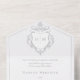 Elegant Grey Chinoiserie Bird Crest Wedding All In One Invitation