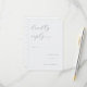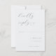 This elegant wedding RSVP card features a minimalist design with a soft, light grey background that highlights its sophisticated cursive typography. The dark grey script adds a touch of refinement and personalisation, while the clean layout ensures clarity and ease of use. Perfect for formal events, this card combines simplicity with an air of elegance, making it ideal for couples seeking a polished yet straightforward invitation solution.
