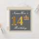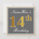 Elegant, Grey, Faux Gold 14th Birthday + Name Invitation