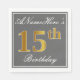 Elegant Grey, Faux Gold 15th Birthday; Custom Name Napkin