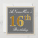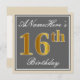 Elegant, Grey, Faux Gold 16th Birthday + Name Invitation