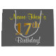 Elegant, Grey, Faux Gold 17th Birthday + Name Large Gift Bag