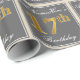 This simple and elegant wrapping paper design features a personalised message like "ANameHere’s 17th Birthday" (with the "17th" having a faux/imitation gold-like colouring look) within a grey-coloured square area featuring a simple border outline. The name is in an elegant white-coloured script-like text, and can be personalised. Wrapping paper like this could perhaps be used when wrapping birthday gifts for somebody who is celebrating their seventeenth birthday. [~Z0000222]