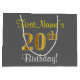 Elegant, Grey, Faux Gold 20th Birthday + Name Large Gift Bag