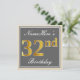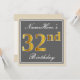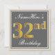 Elegant, Grey, Faux Gold 32nd Birthday + Name Invitation