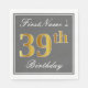 Elegant Grey, Faux Gold 39th Birthday; Custom Name Napkin