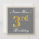 Elegant, Grey, Faux Gold 3rd Birthday; Custom Name Invitation