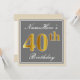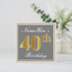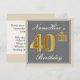 Elegant, Grey, Faux Gold 40th Birthday + Name Invitation