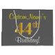 Elegant, Grey, Faux Gold 44th Birthday + Name Large Gift Bag
