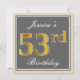 Elegant, Grey, Faux Gold 53rd Birthday + Name Invitation