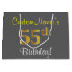 Elegant, Grey, Faux Gold 55th Birthday + Name Large Gift Bag