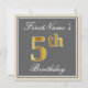 Elegant, Grey, Faux Gold 5th Birthday; Custom Name Invitation
