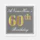 Elegant Grey, Faux Gold 60th Birthday; Custom Name Napkin