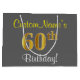 Elegant, Grey, Faux Gold 60th Birthday + Name Large Gift Bag