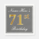 Elegant Grey, Faux Gold 71st Birthday; Custom Name Napkin