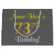 Elegant, Grey, Faux Gold 73rd Birthday + Name Large Gift Bag