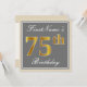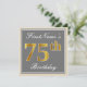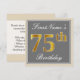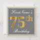 Elegant, Grey, Faux Gold 75th Birthday + Name Invitation