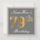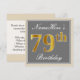Elegant, Grey, Faux Gold 79th Birthday + Name Invitation