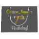 Elegant, Grey, Faux Gold 7th Birthday; Custom Name Large Gift Bag