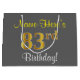 Elegant, Grey, Faux Gold 83rd Birthday + Name Large Gift Bag