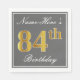Elegant Grey, Faux Gold 84th Birthday; Custom Name Napkin