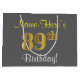 Elegant, Grey, Faux Gold 89th Birthday + Name Large Gift Bag