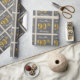 This simple and elegant wrapping paper design features a personalised message like "NameHere’s 90th Birthday" (with the "90th" having a faux/imitation gold-like colouring look) within a grey-coloured square area featuring a simple border outline. The name is in an elegant white-coloured script-like text, and can be personalised. Wrapping paper like this could perhaps be used when wrapping birthday gifts for somebody who is celebrating their ninetieth birthday. [~Z0000222]