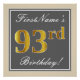 Elegant, Grey, Faux Gold 93rd Birthday + Name Poster