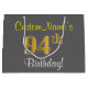 Elegant, Grey, Faux Gold 94th Birthday + Name Large Gift Bag