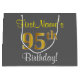 Elegant, Grey, Faux Gold 95th Birthday + Name Large Gift Bag