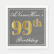 Elegant Grey, Faux Gold 99th Birthday; Custom Name Napkin