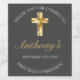 Elegant Grey Gold Cross 1st Communion Wine Label