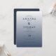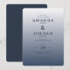 This elegant wedding invitation features a minimalist design with a gradient background transitioning from light grey to deep blue-grey, creating a serene and sophisticated atmosphere. The layout is vertically orientated with centred alignment, emphasizing key elements through size and spacing. Classic serif typography adds formality, while the absence of decorative motifs keeps the focus on refined typographic elegance. Perfect for a formal gathering, this invitation conveys anticipation and timelessness, ideal for couples seeking a simple yet luxurious aesthetic.