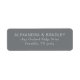 This return address label features a clean, minimalist design with a solid grey background and crisp white text. The layout is simple yet elegant, showcasing a centred composition with ample spacing for easy readability. The modern sans-serif font adds a contemporary touch, making it perfect for formal occasions or everyday use. Its sophisticated style conveys clarity and precision, ideal for those who appreciate understated elegance in their stationery.