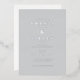 This elegant wedding invitation features a clean, minimalist design with a soft grey background and white text for a sophisticated look. The layout is vertically orientated, utilising ample negative space to create a balanced and airy composition. A classic serif font adds formality, while the stylised ampersand between the names provides a subtle decorative touch. Perfect for a formal event, this invitation conveys an understated elegance that emphasizes tradition and refinement.