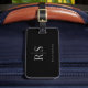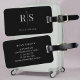 An elegant and classy black design with personalised grey monogram, name and contact info on back.