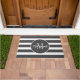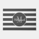 Set off your front porch or patio with this Elegant Grey Monogram Script Name Doormat. This minimal design has dark grey horizontal stripes on white background and circle border on the centre. Your monogram initial is in light grey simple lettering and personalised with name in white trendy hand lettered script. Click personalise template option and follow the prompts.