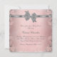 Beautiful pink lace on a silvery grey background with an elegant white carriage wrapped in a pretty silver grey diamond centre bow. The same pink lace and grey ribbon and diamond centre bow is on the back side. This elegant pink and grey baby shower invitation is easily customised for your event by adding your event details, font style, font size & colour, and wording.