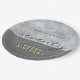 Elegant and Classy Grey Script Seventy Man 70th Birthday Party Paper Plate. Classy design with dark and bright colours and trendy script sixty. Bright grey texture for the background. Personalise the paper plate with your name. Change the text Happy birthday and the age if you want. Great for a man who is celebrating his 70th birthday.