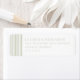 This return address label features a minimalist and elegant design with a clean white background, accented by subtle vertical stripes in light grey on the left side. The typography is sophisticated, using a mix of serif fonts for the names and address, paired with bold sans-serif numbers for the zip code, creating a modern yet refined look. The layout emphasizes clarity and simplicity, making it ideal for those who appreciate understated elegance in their stationery. Perfect for personal correspondence or special occasions, this label conveys professionalism and attention to detail.