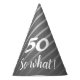 Elegant grey stripe pattern man 50th birthday party hat. Inspirational and funny saying 50 so what is perfect for a man celebrating his 50th birthday and has a sense of humour. The design has an elegant stripe pattern in grey colours. You can change the age number if you want.