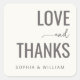 This square sticker features a minimalist and elegant design with a focus on typography, perfect for expressing gratitude. The layout is clean and uncluttered, utilising a light beige background paired with shades of medium charcoal grey for the text. The bold sans-serif font creates a strong visual impact, while delicate script adds a touch of grace. Ideal for personalising gifts or notes, this design conveys warmth and sophistication, making it suitable for various occasions like weddings, anniversaries, or thank-you gestures.