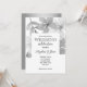 Simple, elegant, floral chic grey wedding invitations with giant watercolor flowers.