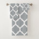 Elegant Grey White Moroccan Quatrefoil Pattern Bath Towel Set