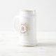 Celebrate your groomsmen with this personalised beer stein, featuring a burgundy and gold floral monogram. The elegant crest design adds a refined touch to this unique wedding party gift—perfect for sipping in style on the big day and beyond.