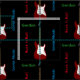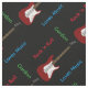 Elegant Guitar Print Fabric .With a black background colour you can change. From the custom tag to what ever colour you like. With the text in three colour to edited as wish.