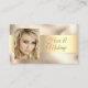 This simple, elegant design of a woman's beautiful face on gold-on-gold background works well for hair and makeup salons. Personalise this Business Card with your name, occupation, address, phones, photo and websites.